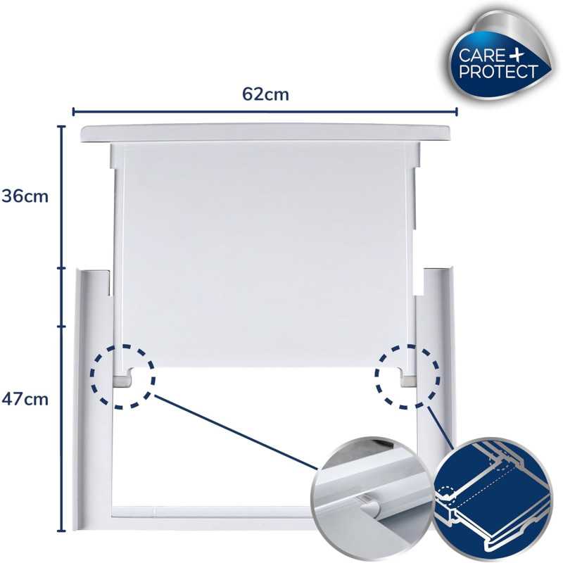 ADAPTATION UNIVERSELLE : Le kit de superposition CARE + PROTECT est compatible avec tous les sèche-linge de profondeur standard et les machines à laver de profondeur 47 à 62 cm.